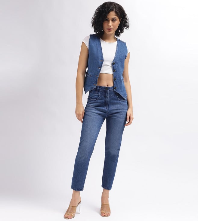 Discover the perfect blend of style and comfort with our blue slim straight jeans for women. Crafted from pure cotton fabric, these jeans offer a soft and breathable feel, ideal for all-day wear. The mid-rise design provides a flattering fit, while the washed pattern adds a touch of casual elegance. Featuring a convenient button and zip closure, these jeans ensure a secure fit. Whether you're dressing up for a night out or keeping it casual, these versatile jeans are a wardrobe essential.