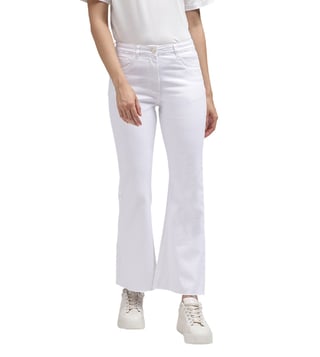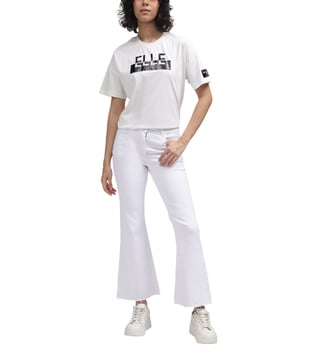 Experience chic comfort with these fashionable jeans. Crafted from a blend of breezy fabric, they offer a flattering fit and easy movement. The button and zipped closure ensure a secure fit, while the chic pattern adds a touch of glamour.