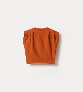 Unleash your vibrant spirit with this eye-catching orange sleeveless T-shirt, designed for the modern girl who loves to stand out. Crafted from a blend of 92% polyester and 8% elasticity, it offers a comfortable regular fit that moves with you. The round neck adds a classic touch, while the bold graphic pattern infuses a playful energy into your wardrobe. Perfect for sunny days or layering, this T-shirt is a versatile staple that combines style and comfort effortlessly, making every moment a statement.
