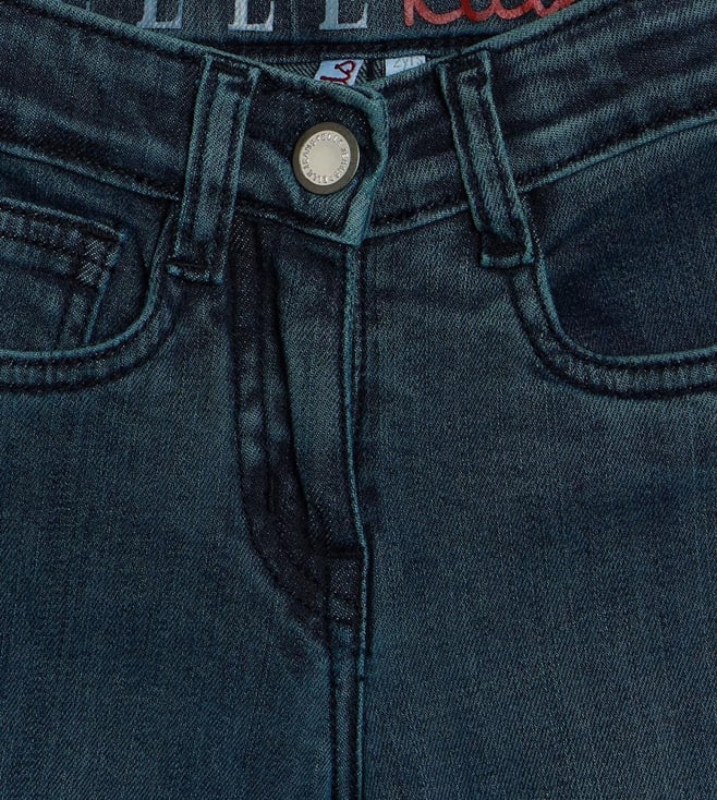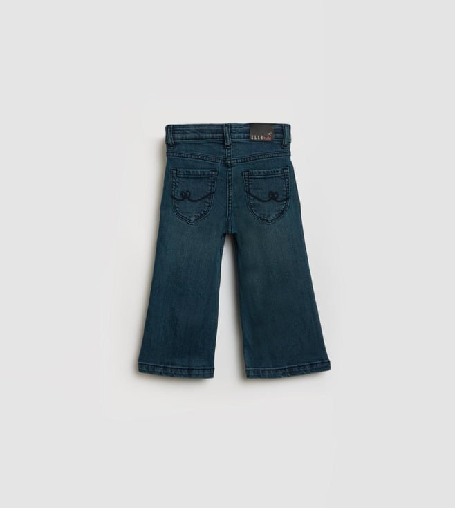 Elle Girls Blue Oversized Solid Jeans