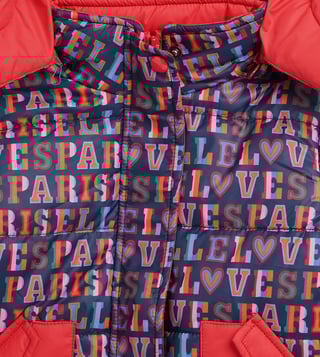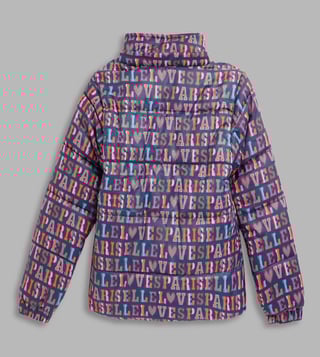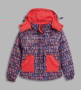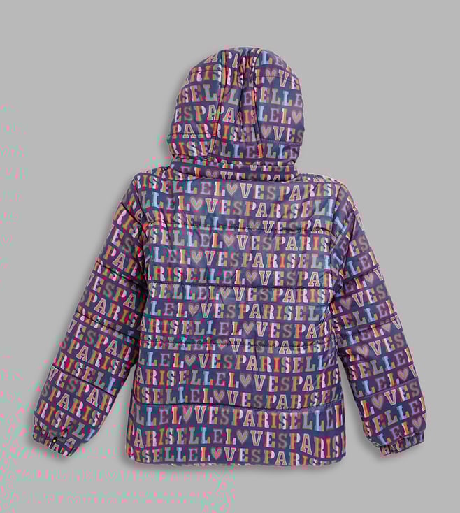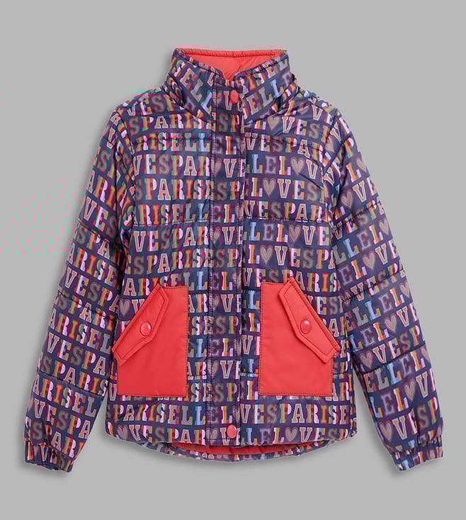Cozy up in style with this vibrant blue padded jacket, featuring a playful print, full sleeves, a cozy hood, and a practical zipper closure. Perfect for keeping her warm and looking cool all season long.