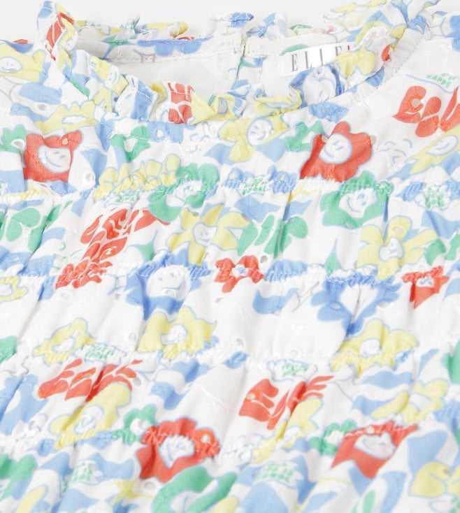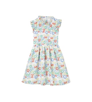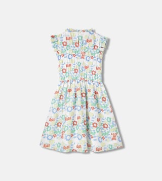 Elevate her wardrobe with this charming fit and flare dress, perfect for any occasion. Crafted from pure cotton, it ensures comfort and breathability all day long. The dress features a delightful printed pattern on a crisp white background, adding a touch of whimsy to her look. Short sleeves and a playful ruffle collar bring a sweet, youthful vibe, while the button closure at the back ensures easy dressing. Ideal for parties or casual outings, this dress is a versatile addition to her collection.