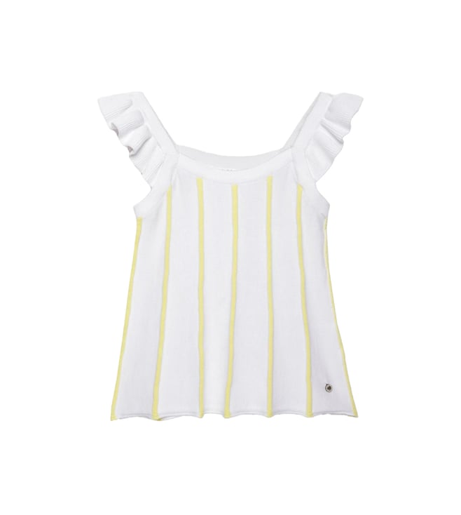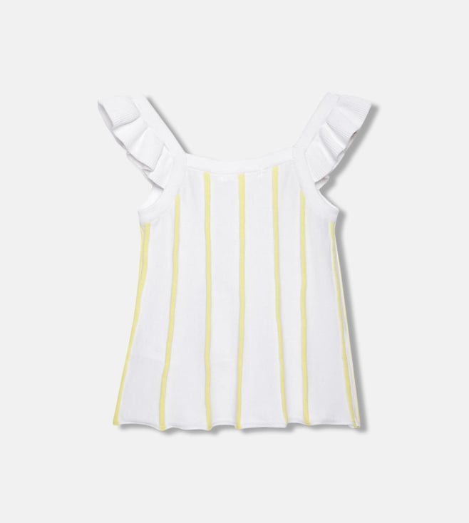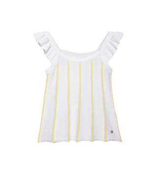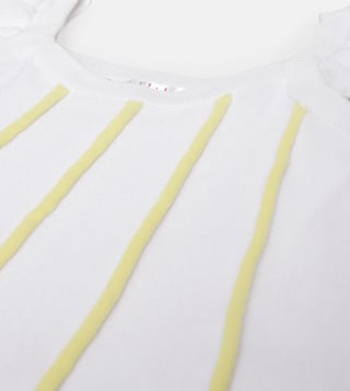 Elevate your everyday style with our chic white flare-fit T-shirt, designed for the modern girl who loves a touch of flair. Crafted from pure cotton, this tee promises ultimate comfort and breathability. The subtle striped pattern adds a playful twist, while the short sleeves and U-neckline offer a classic, versatile look. With its easy pull-on closure, this T-shirt is perfect for any casual outing or relaxed day at home. Pair it with your favorite jeans or a skirt for an effortlessly stylish ensemble.