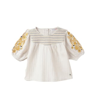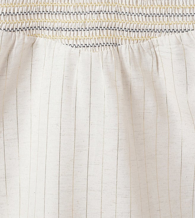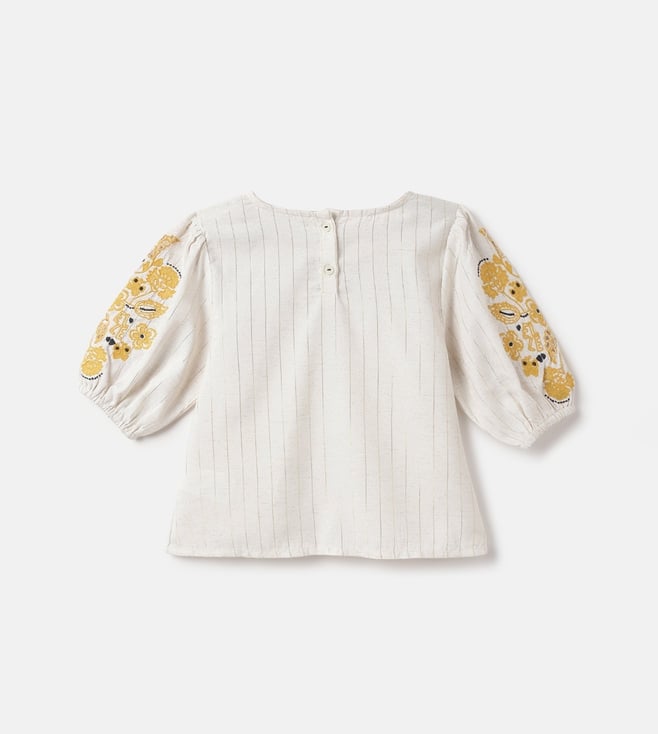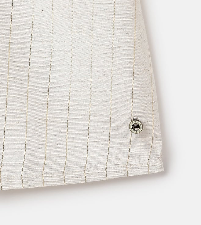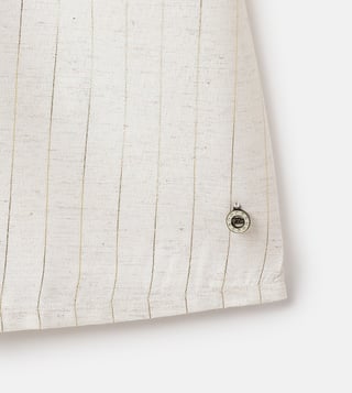 A breezy white top with playful stripes, perfect for sunny days. Relaxed fit for ultimate comfort, half sleeves for a touch of coolness, and a round neck for a classic look. Crafted from pure cotton, this button-up top is soft against your skin.