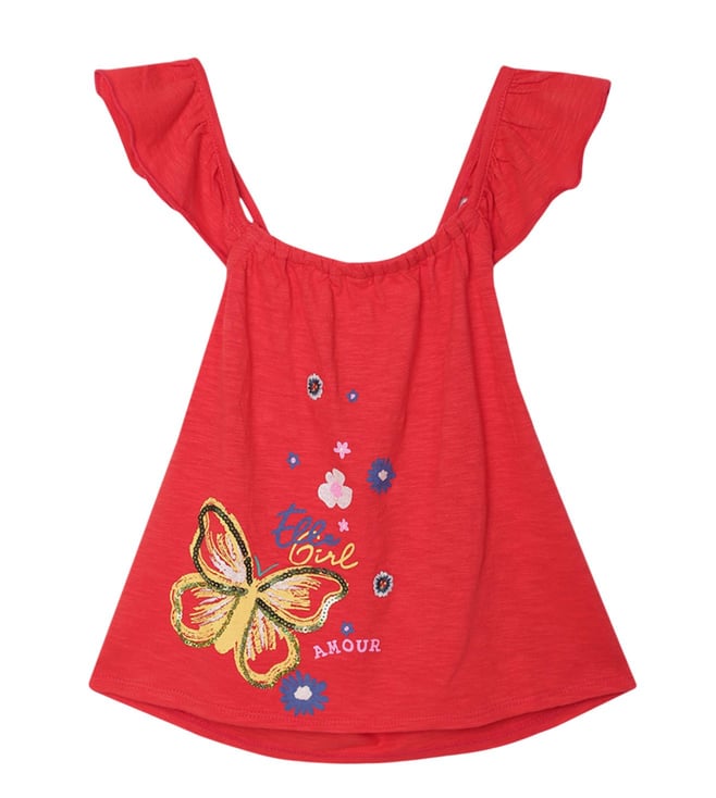 Dress your little angel in style with this charming top. Featuring a delicate embroidered pattern, this top ensures comfort with its effortless fit and pretty sleeves. The trendy neck and easy pull-on closure add practicality, making it perfect for any playful day out.