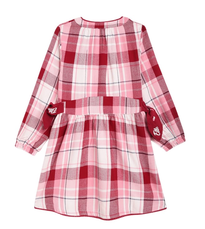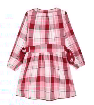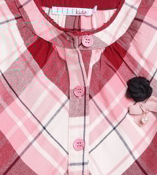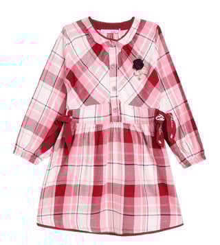 Elle Kids Deep Red & Pink Checked Regular Fit Dress