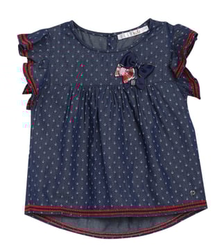 Discover the charm of this adorable top, featuring playful printed details and crafted from gentle fabric. This effortless top has pretty sleeves and a gorgeous neckline, enhanced with a practical button closure. Tailored to perfection, it promises both comfort and style.