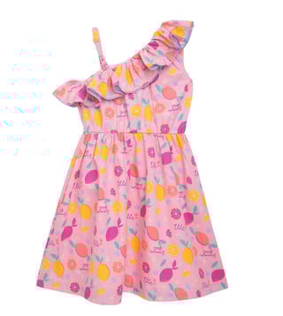 Dress your little ones in style with this charming dress. Featuring a trendy one-shoulder design, this modern dress boasts a playful print and is crafted from breathable fabrics for all-day comfort. Its flattering fit and easy pull-on closure make it perfect for any casual occasion.