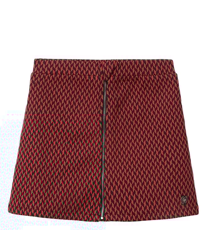 Elle Kids Red & Black Printed Regular Fit A-Line Skirt