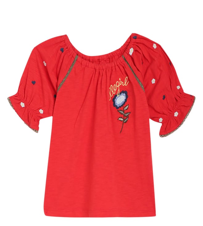 Dress your little angel in style with this vibrant top featuring a chic fit and charming embroidered details. Crafted from gentle fabric, it has pretty sleeves and a gorgeous neck for comfort. A convenient pull-on closure makes it perfect for an active lifestyle.
