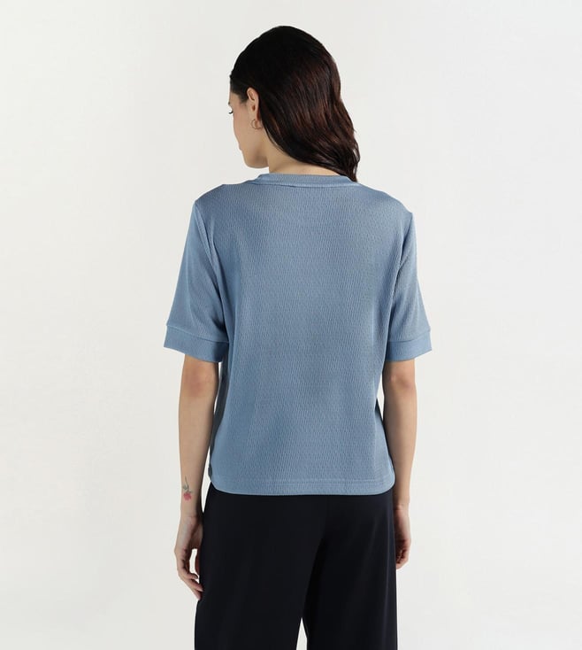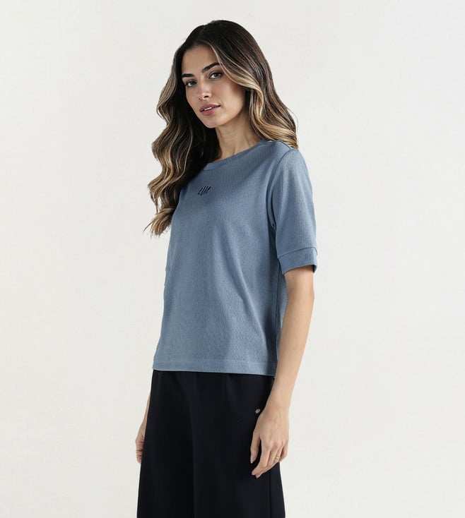 Crafted in a relaxed fit this tee offers easy movement for casual days. Fabric blend of polyester & spandex gives it a soft stretch with a smooth feel. A round neck and half sleeves keep the design simple. Branding detail adds a touch of style while the solid blue tone keeps it in line with casual fashion trends.