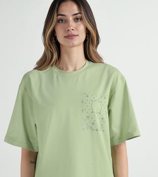 A solid green tee designed with a crew neck and half sleeves for an easy everyday style. Made up of cotton fabric makes it breathable and light on skin. The regular fit keeps it simple to wear while Elle branding adds a subtle detail. A core casual piece that stays in trend and pairs well with jeans or joggers.