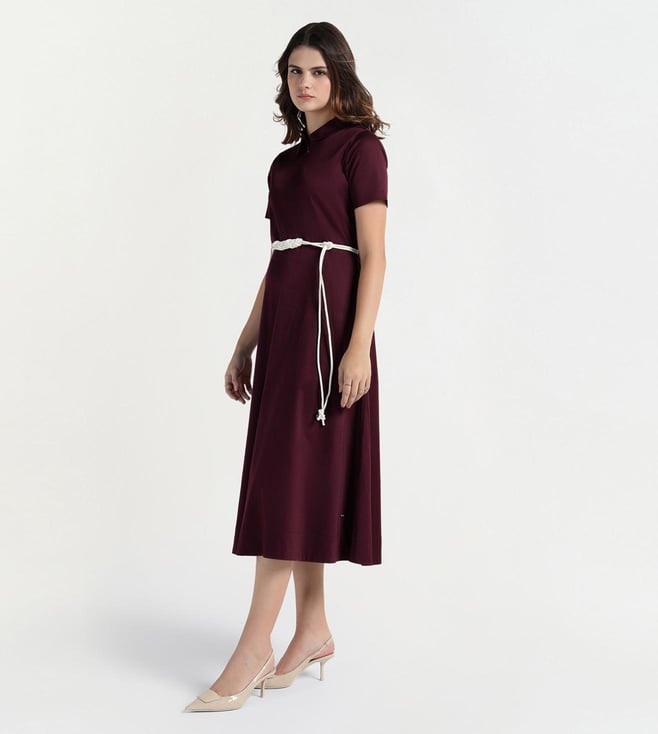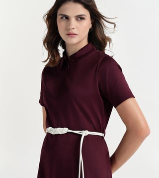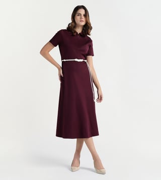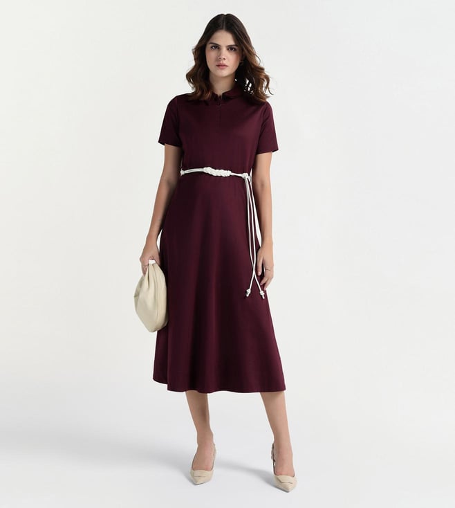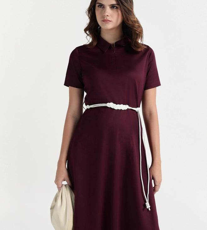 Elle Women Maroon Solid Collar Dress