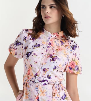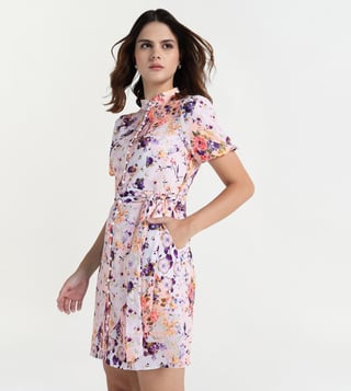 Women Multicolor Printed Mandarian Colar Dress