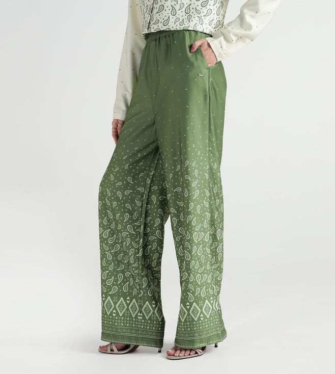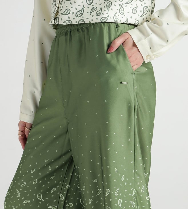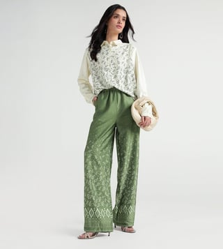 Cut in a mid-rise style these pants come with a regular fit for easy movement. Fabricated out of pure cotton gives it a breathable feel and soft on skin. Designed with elastic waist for comfort and printed geometric pattern for a stylish twist. The olive tone keeps them versatile while Elle branding adds a neat detail. A good pick for casual wear in trend.