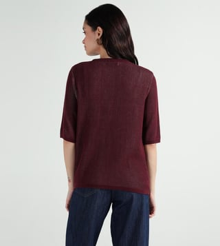 A textured ribbed finish gives this wine tee a modern edge. Cut in slim fit, it sits close without feeling tight. The crew neck with half sleeves keeps it classic for daily wear. Made from cotton, it feels breathable on skin. The solid shade fits well with the season’s casual trend, making it a simple go-to piece.