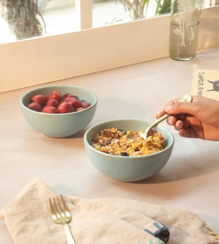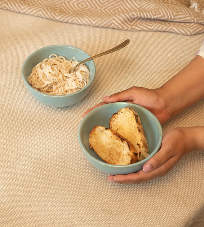 Savour soulful meals and beautiful moments with this handcrafted Aqua Rustic Bowl Set. Handcrafted in soothing tones and earthy glaze, their minimalist form brings soft warmth to your table. Being microwave/oven/dishwasher-safe, these are ideal for snacks, salads, & one-pot meals. Curated in a gift box, these ceramic bowls are your go-to for thoughtful hosting and gifting.This product is handmade and each piece is unique! Due to the differences in displays of computers/laptops/phones, the colours on your screen may vary marginally from the actual colours of the product.