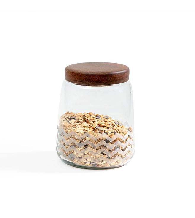 Twigy Frosted Glass Jar with Wooden Lid (Short)