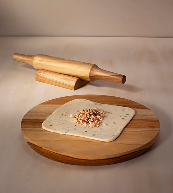 Brown Teak Wooden 27.94 cm x 27.94 cm Chakla Belan with Stand