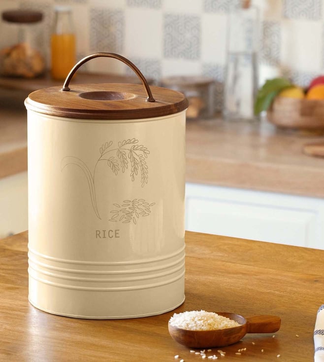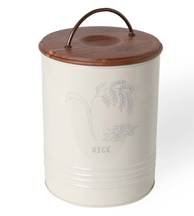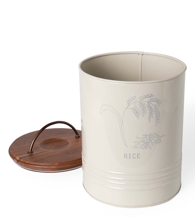 Ellementry Eggshell Rice Storage Barrel with Wooden Lid (Large)