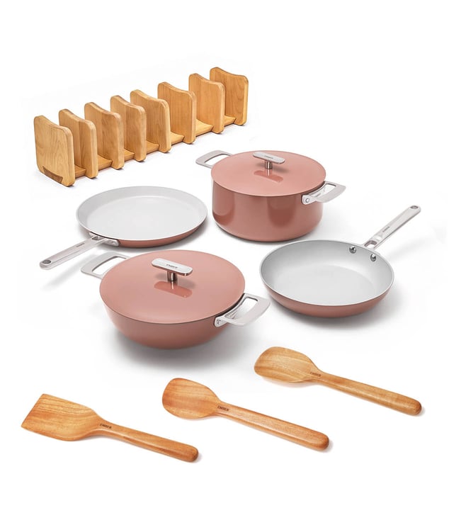 Ember Terracotta Ceramic Non-Stick 4 Pcs Set-Frypan Kadai Tawa Dutch Oven - Stainless Steel Handle