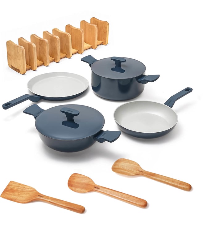 Ember Blue Ceramic Non-Stick 4 Pcs Set-Frypan Kadai Tawa Dutch Oven - Soft-touch Handle