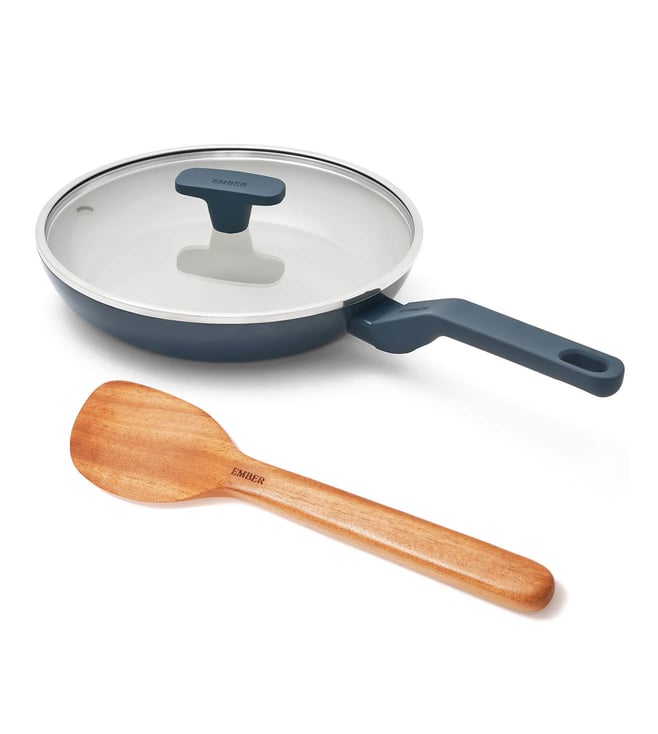 Ember Blue Ceramic Non-Stick Mini Pan with Stainless Steel handle Spatula & Glass Lid