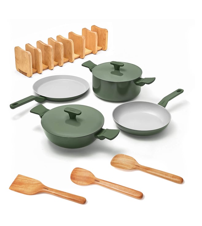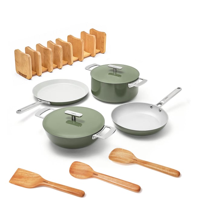 Ember Green Ceramic Non-Stick Kadai - Stainless Steel handle Metallic Lid & Spatula