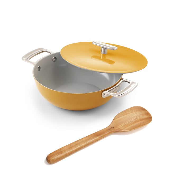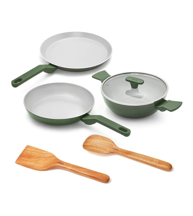 Ember Green Ceramic Non-Stick Kadai - Soft-touch handle Metallic Lid & Spatula