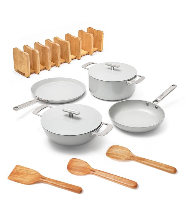 Ember Grey Ceramic Non-Stick 4 Pcs Set - Frypan Kadai Tawa Dutch Oven - Stainless Steel Handle