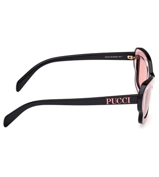 Showcasing a distinct design, this pair of Sunglasses from EMILIO PUCCI is sure to make a style statement. The Pink lenses are made with care from Plastic that not only lends you a smart look but also assures complete protection of your eyes. Designed to perfection from Acetate, the Black-hued frame is light in weight. The Full Rim design further magnifies its overall charm.