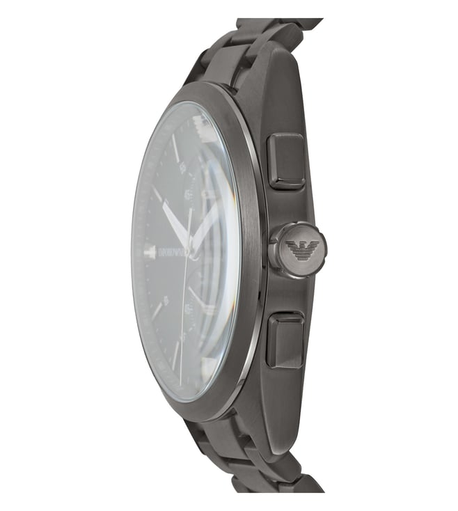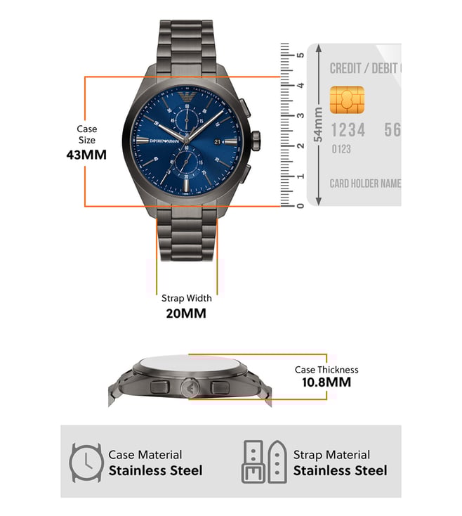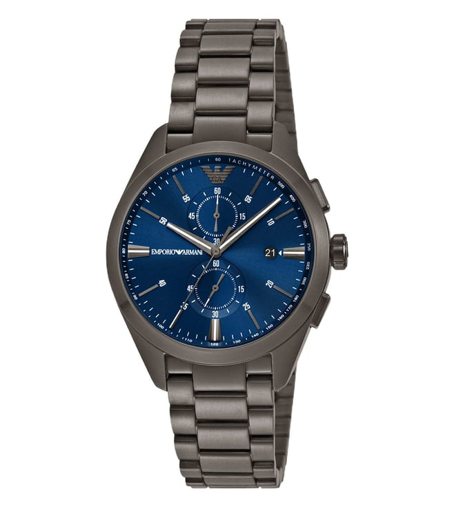 Lending a contemporary twist to an elegant design, this men analog watch from Emporio Armani is a must-have wrist essential. Its strap comes in a shade of black that elevates the look of the watch. The navy round dial is secured by a mineral glass and is housed in a case. It exudes chronograph, and a crown for time adjustment. Furthermore, it is completed with a jewellery clasp clasp to ensure a secure fit on the wrist.