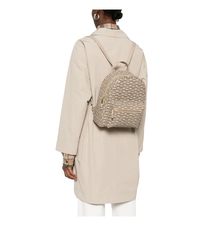 Expand the collection of your accessories in a trendy way with this bag from Emporio Armani. Coated finishall-over logo printtwo-way zip fasteningsingle flat top handletwo adjustable shoulder strapsfront zip-fastening pocketmain compartmentfull lining