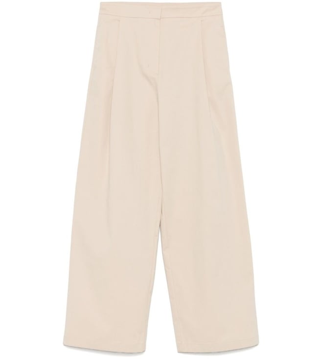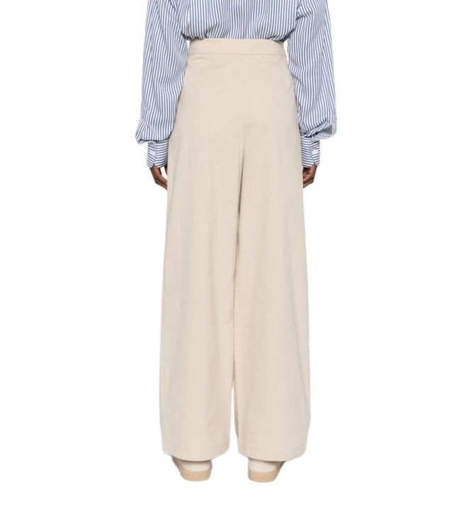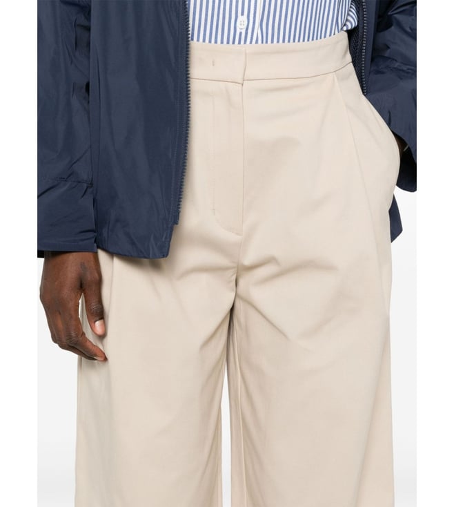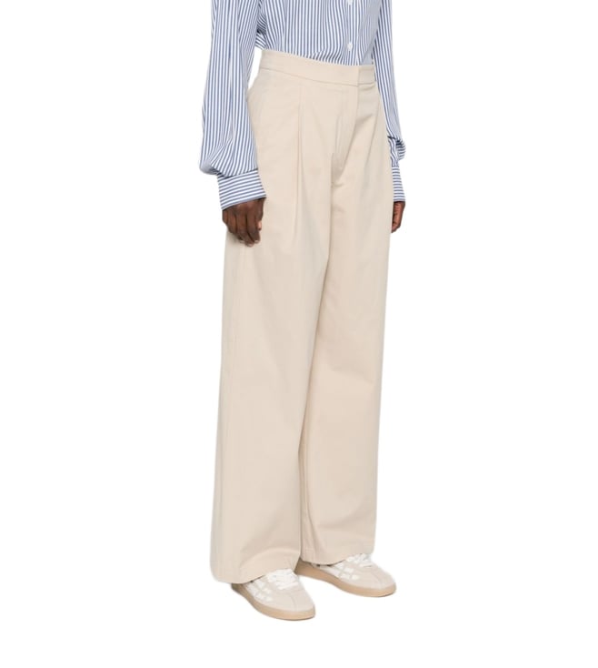 Elevate your wardrobe with the Emporio Armani Beige Loose Fit Trousers. Designed with beige, concealed front button, hook and zip fastening, two side inset pockets, dart detailing, embroidered logo to the rear, cotton 98%, spandex/elastane 2%, this piece fits true to size. we recommend you get your regular size, model is 1, 75m / 5ft 8in wearing size 40 (it), these trousers combine comfort and sophistication for everyday wear.