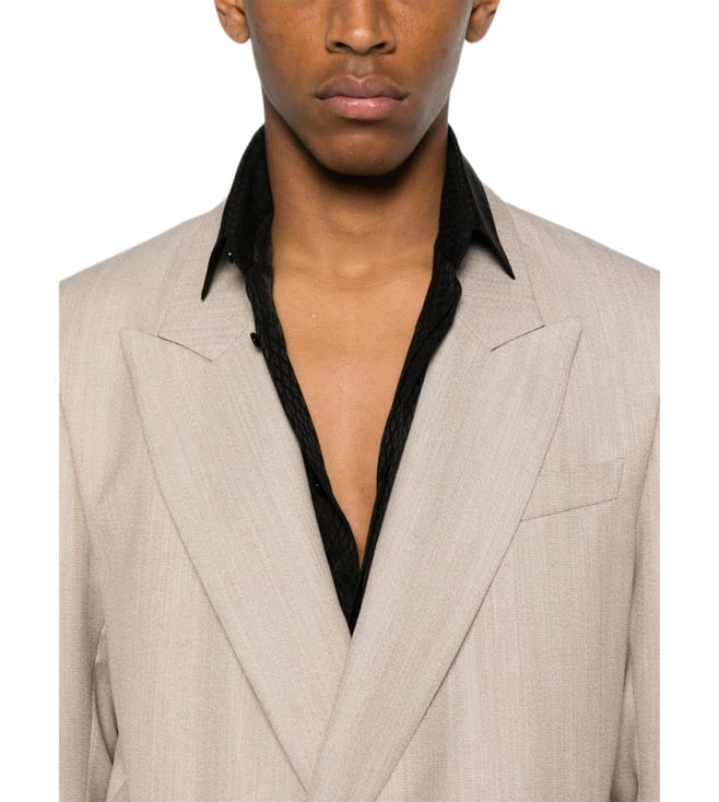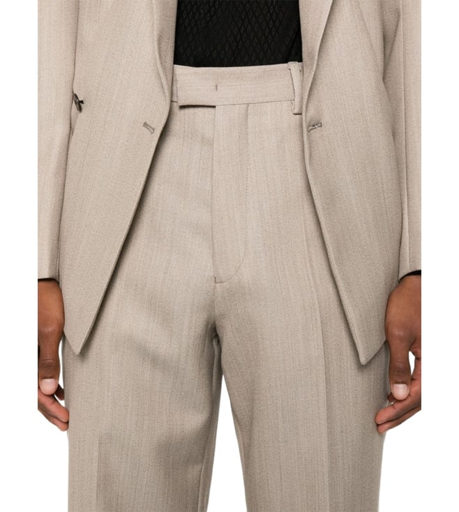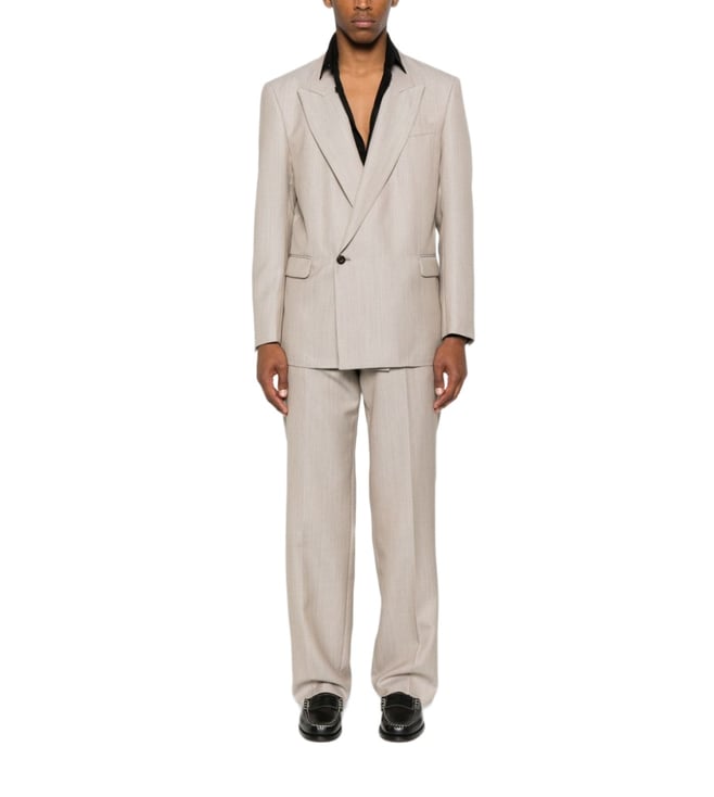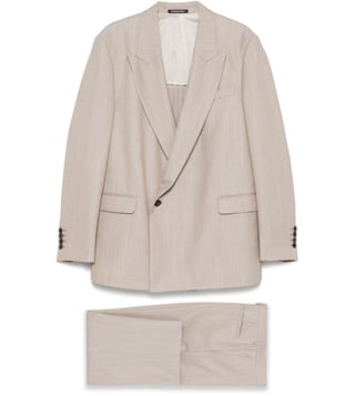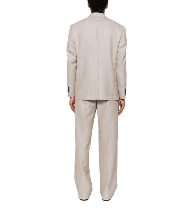 Elevate your style with the Emporio Armani Beige Regular Fit Single Breasted Suit. Doublebreasted button fastening concealed front fastening chest welt pocket two side flap pockets composition: lining: acetate 67%, polyester 33% outer: wool this piece fits true to size. recommend you get your regular size model is 1,84m / 6ft 1in wearing size 48 (it).