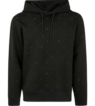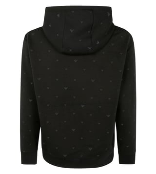 Emporio Armani Black Allover Logo Cotton Hoodie