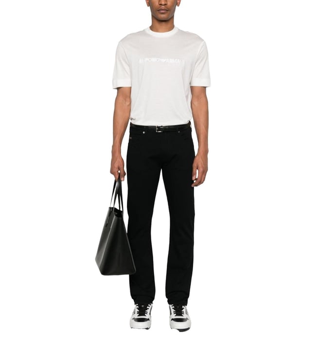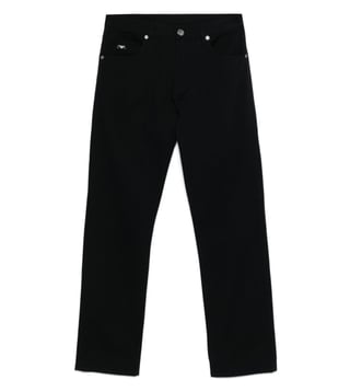 Elevate your style with the Emporio Armani Black Regular Fit Jeans. Zip fly button closure belt loops pockets composition: cotton Crafted for durability and comfort. Products purchased from Darveys are supported exclusively by the warranty/exchange policies of Darveys and its partner boutiques. Brand owners and their channel partners are not responsible for exchange/warranty services for items purchased through Darveys.