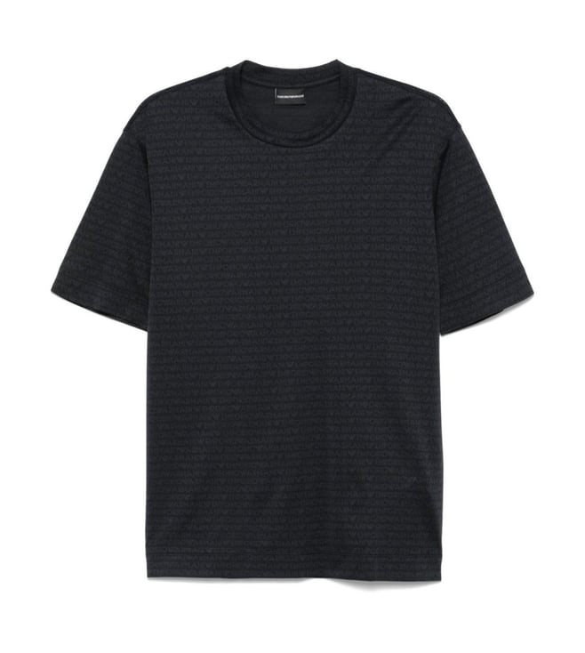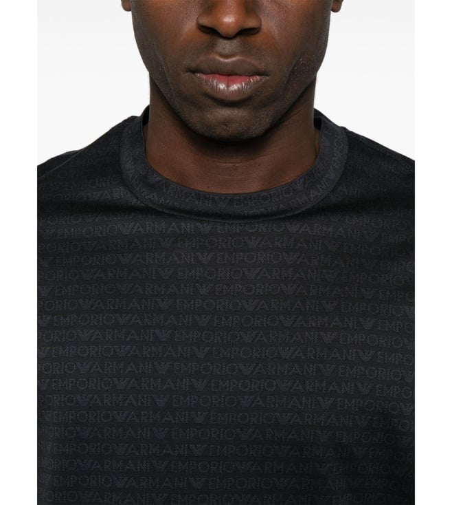 Emporio Armani Black Crewneck Allover Logo T-Shirt