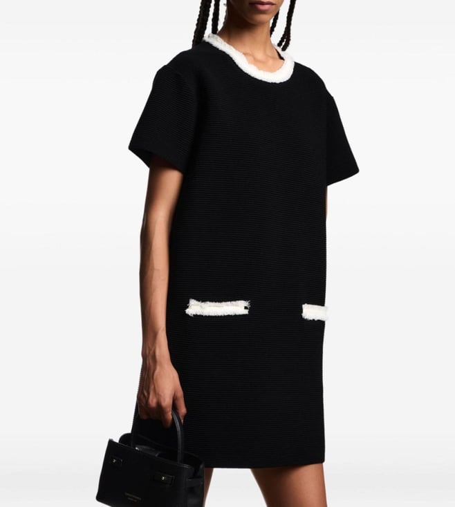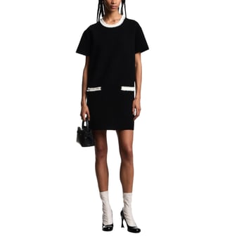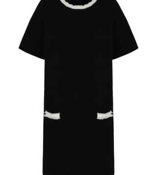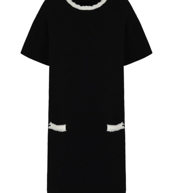 Embrace timeless elegance with this chic black dress, a masterpiece of modern design and classic allure. Crafted from a luxurious blend of viscose, acrylic, virgin wool, polyester, polyamide, and elastane, it offers a soft yet structured silhouette. The solid pattern exudes sophistication, while short sleeves and a round neck add a touch of casual grace. Perfectly tailored for the contemporary woman, this dress is your go-to for any occasion, ensuring you stand out with understated elegance and comfort.