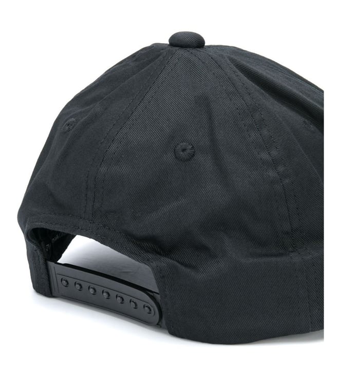 Black cotton logo-embroidered cap from Emporio Armani featuring five-panel construction, embroidered logo to the front, curved peak and snap fastening. Lining: cotton 100 percent, polyester 100 percent