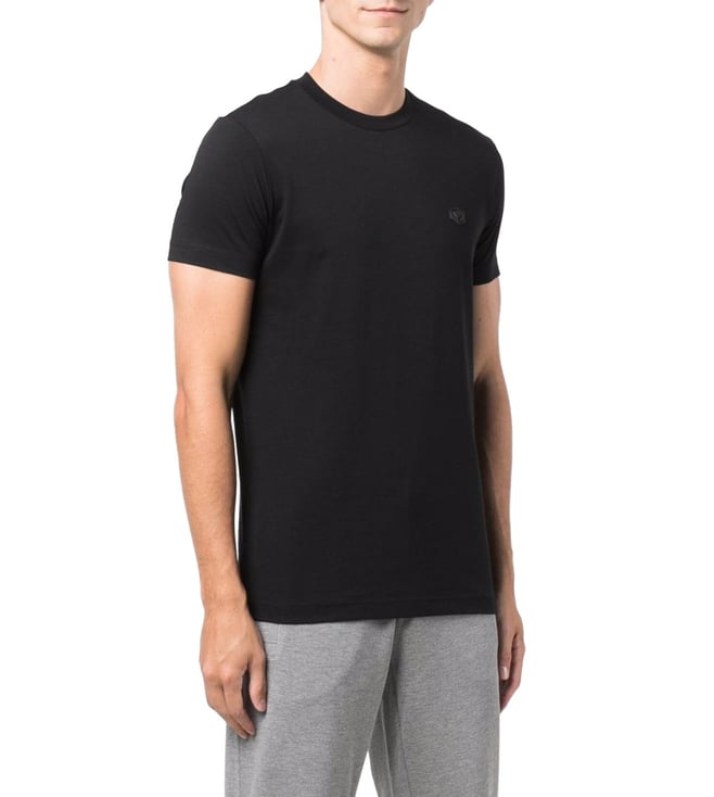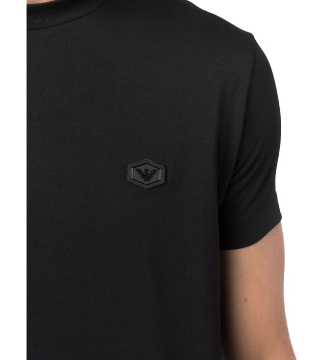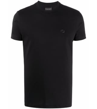 Elevate your style with the Emporio Armani Black Regular Fit t-shirt. Jetblack cotton logopatch shortsleeved t-shirt from emporio armani featuring round neck, short sleeves, straight hem and logo patch to the front. This piece fits true to size. recommend you get your regular size model is 1,84m / 6ft 1in wearing size m.