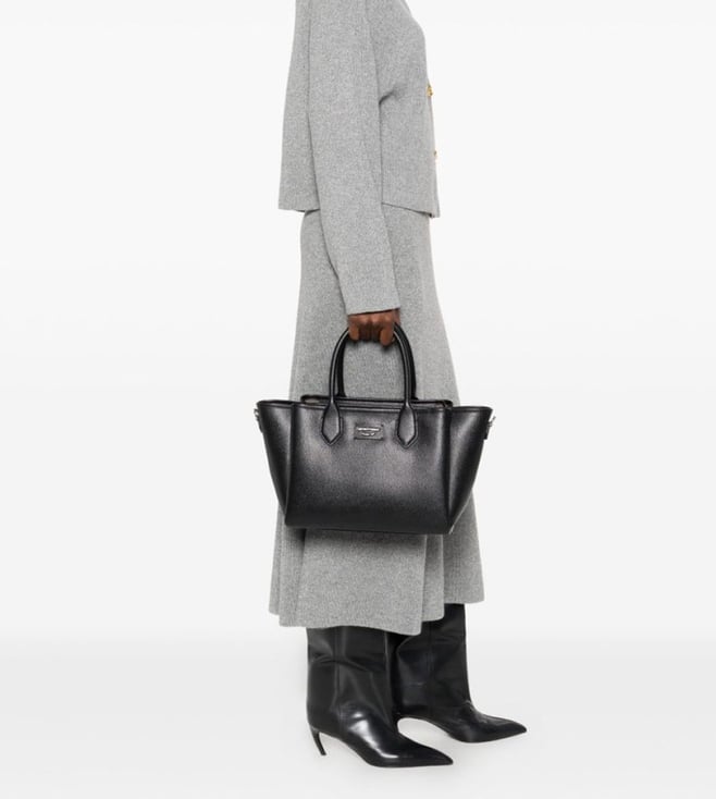 Black Logo Medium Tote, magnetic closure, 1 compartment, 2 outside zip pockets, front logo, dual carry handles with removable adjustable crossbody strap.100% polyurethane With its timeless design and practical features, this bag is a must-have accessory for the modern woman on-the-go.