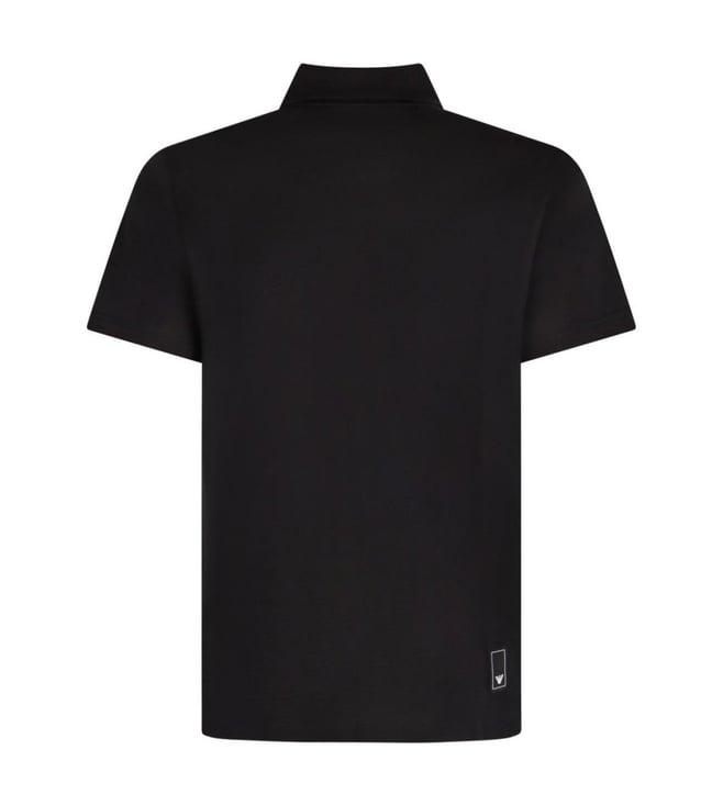 Elevate your style with the Emporio Armani Black Logo Print polo t-shirt. Short front button fastening polo collar short sleeves straight hem. Products purchased from Darveys are supported exclusively by the warranty/exchange policies of Darveys and its partner boutiques. Brand owners and their channel partners are not responsible for exchange/warranty services for items purchased through Darveys.