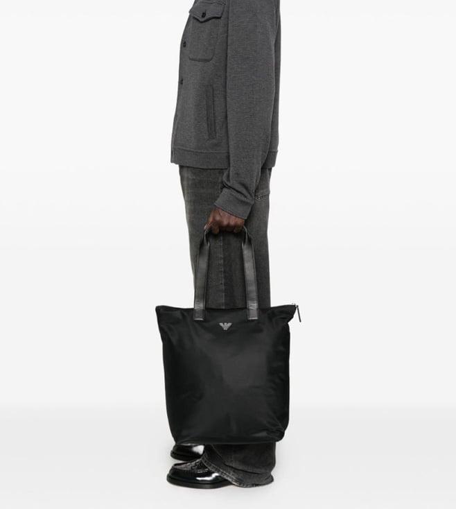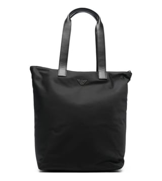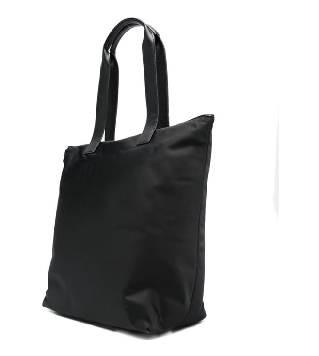 Black Logo Tote Bag, zip closure, 1 compartment, inside zip pocket, front logo, solid, dual carry handles. Polyamide 100% With its timeless design and practical features, this bag is a must-have accessory for the modern woman on-the-go.