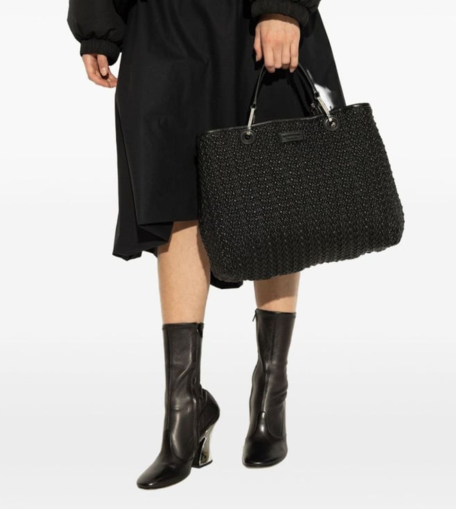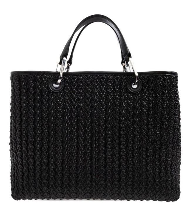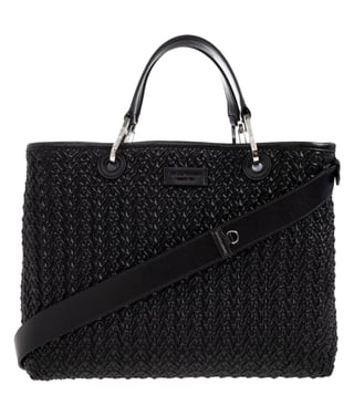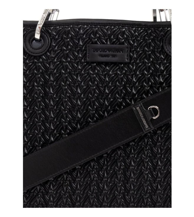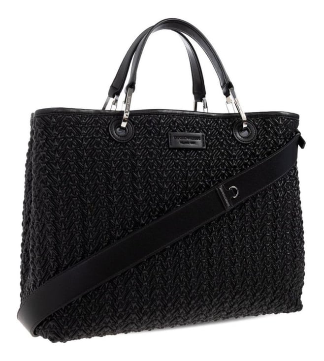 Black My EA Medium Tote, magnetic closure, 1 compartment, removable zip pouch, textured, front logo, dual carry handles with removable shoulder strap.100% Polyester With its timeless design and practical features, this bag is a must-have accessory for the modern woman on-the-go. Products purchased from Darveys are supported exclusively by the warranty/exchange policies of Darveys and its partner boutiques. Brand owners and their channel partners are not responsible for exchange/warranty services for items purchased through Darveys.