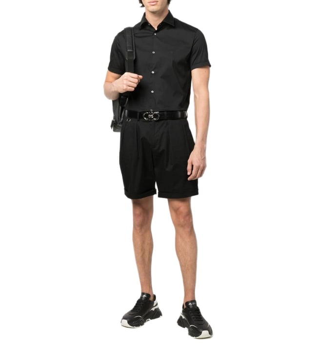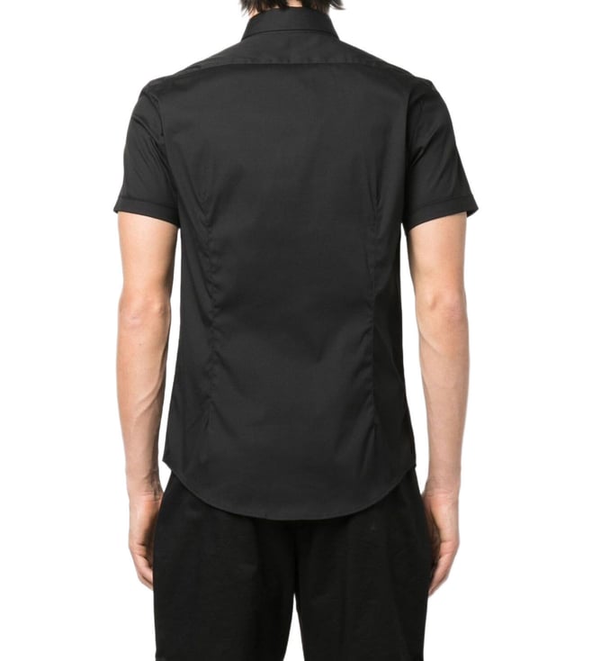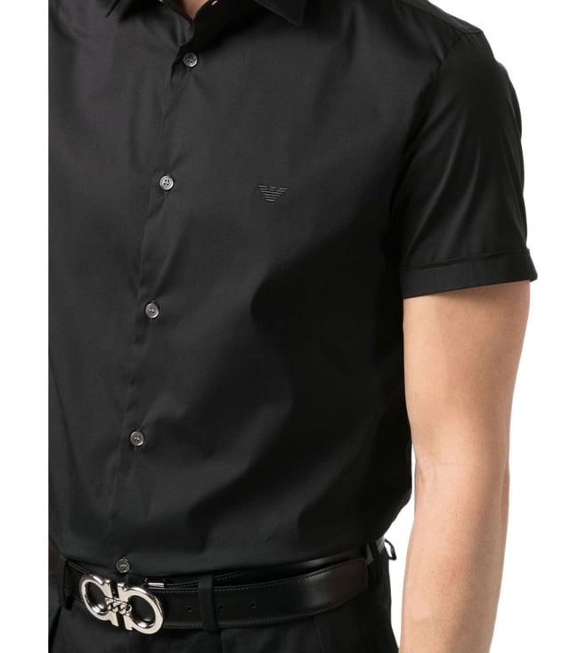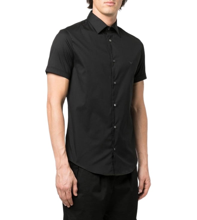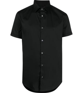 Classic collar, short sleeves, button closure, logo detailed, curved hem.