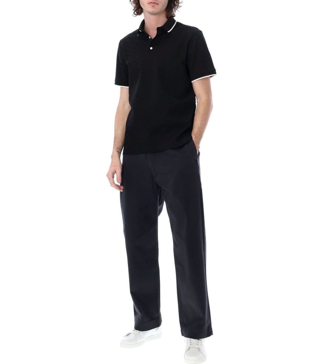 Emporio Armani Black Textured Polo T-Shirt