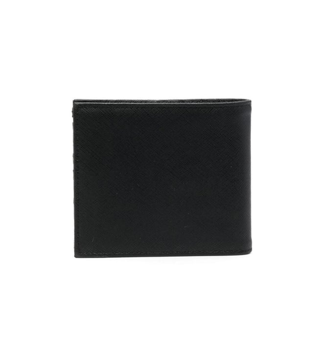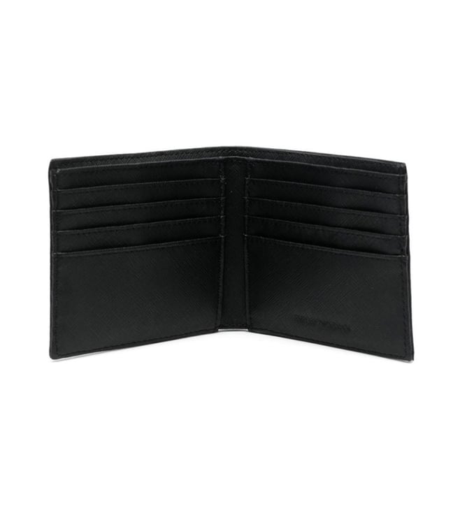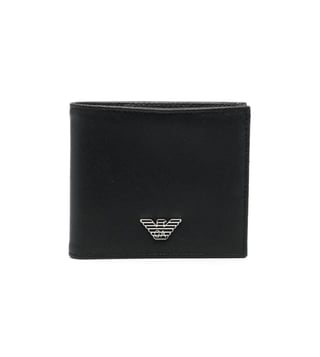 Logolaque bi-fold wallet from emporio armani featuring bi-fold design, internal card slots, note compartment, jet black and recycled leather. Products purchased from Darveys are supported exclusively by the warranty/exchange policies of Darveys and its partner boutiques. Brand owners and their channel partners are not responsible for exchange/warranty services for items purchased through Darveys.