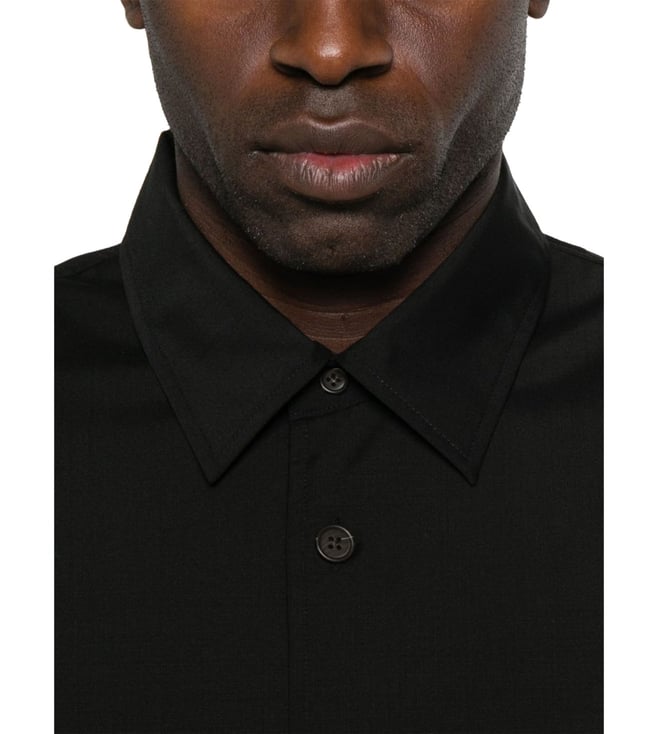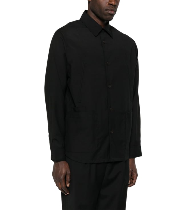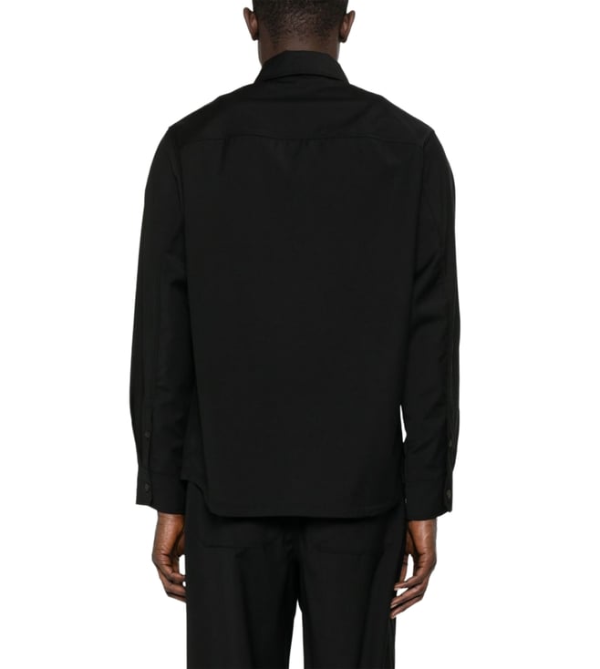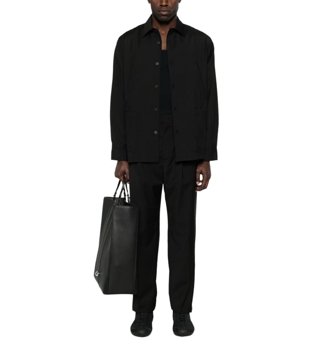 Elevate your style with the Emporio Armani Black Regular Fit Jacket. Black front button fastening two slit pockets at the chest two side patch pockets classic collar a camicia wool shirt jacket. This piece fits true to size. recommend you get your regular size model is 1,84m / 6ft 1in wearing size 48 (it).
