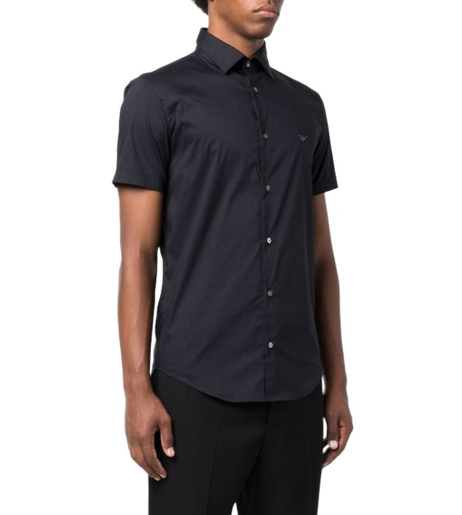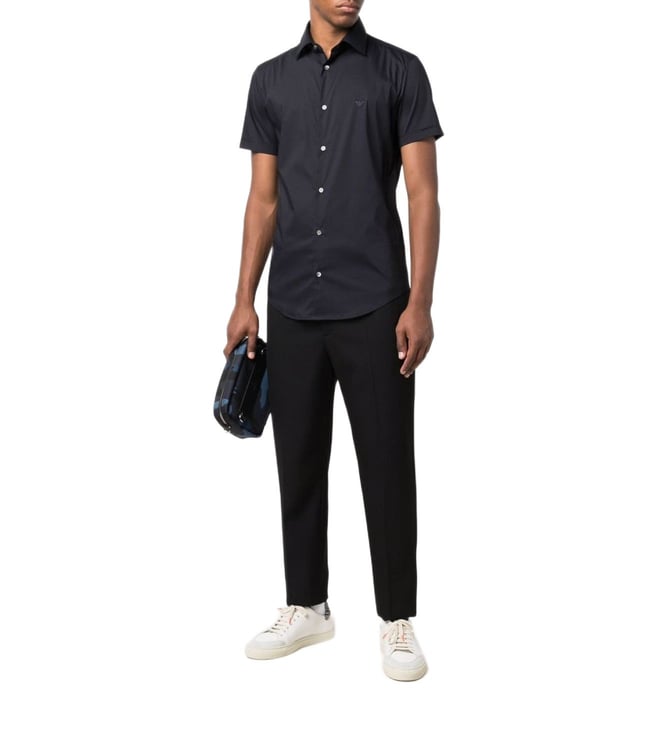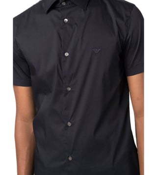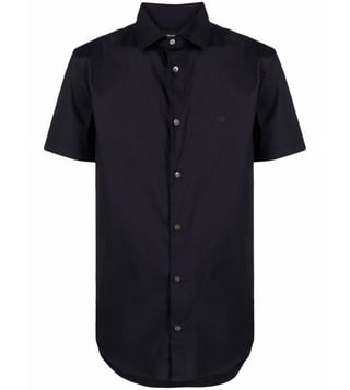 Embroidered logo, classic collar, front button fastening, short sleeves, asymmetric hem. This piece fits true to size. We recommend you get your regular size, model is 1, 84m / 6ft 1in wearing size m.